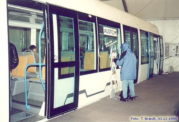Begehbares Holzmodell eines Citadis der Firma Alstom/LHB,