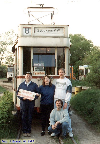FSK-Fahrer und -Schaffner mit Tw 656 und Sommer-Bw 93 auf