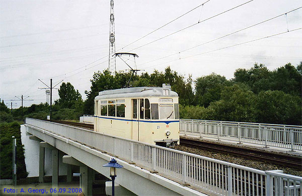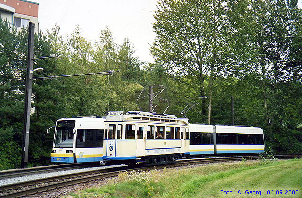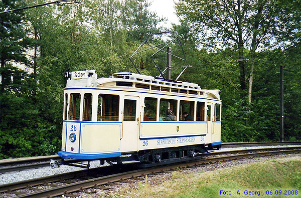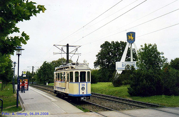 mit dem historischen Wagen 26 (Typ Wismar, Baujahr 1926)