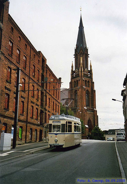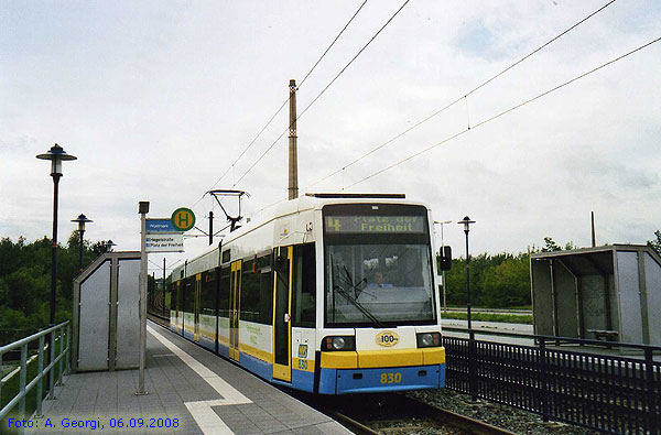 In Gegenrichtung ist Tw 830 unterwegs zum Platz der
